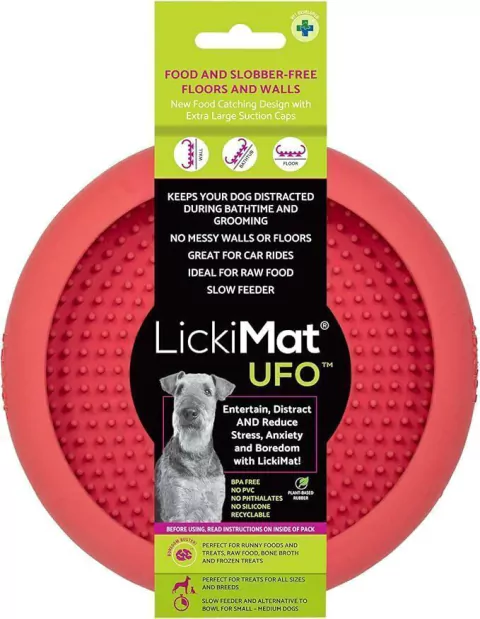 Chegou ao Brasil o LickiMat UFO, o lançamento mais inovador da marca que revolucionou a forma como os cães se alimentam, relaxam e se distraem. Sabia que o ato de lamber ajuda na liberação natural de endorfina? É por isso que os cães costumam lamber para aliviar o estresse – e o UFO foi criado exatamente pra isso: oferecer conforto, distração e bem-estar.